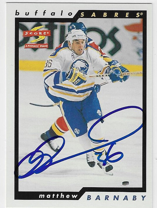 Matthew Barnaby Signed 1996-97 Score Hockey Card - Buffalo Sabres