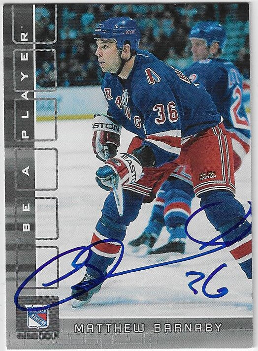 Matthew Barnaby Signed 2001-02 Be A Player Update Hockey Card - New York Rangers