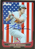 Signed with blue Sharpie. This card was signed during our private signing with Lance. Guaranteed to pass any 3rd party authentication service.