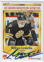 Rejean (Reggie) Lemelin Signed 1992-93 Panini Diana Durivage Hockey Card - Boston Bruins