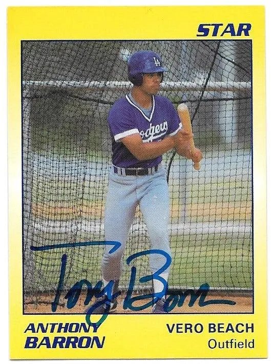 Anthony Barron a signé la carte de baseball étoile 1990 - Vero Beach Dodgers