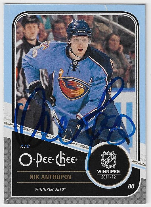 Carte de hockey O-Pee-Chee 2011-12 signée par Nik Antropov - Atlanta Thrashers / Winnipeg Jets