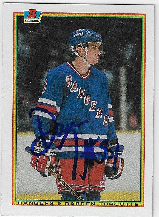 Darren Turcotte Signed 1990-91 Bowman Hockey Card - New York Rangers