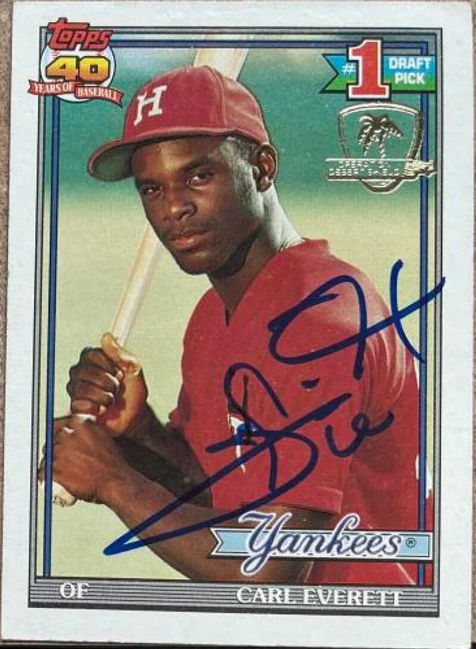 Carte de baseball Topps Desert Shield 1991 signée par Carl Everett - Yankees de New York