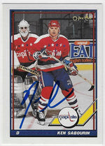 Carte de hockey O-Pee-Chee signée par Ken Sabourin (saison 1991-1992) - Capitals de Washington