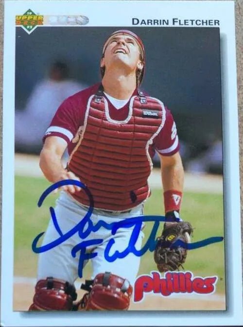 Darrin Fletcher a signé la carte de baseball Upper Deck 1992 - Phillies de Philadelphie