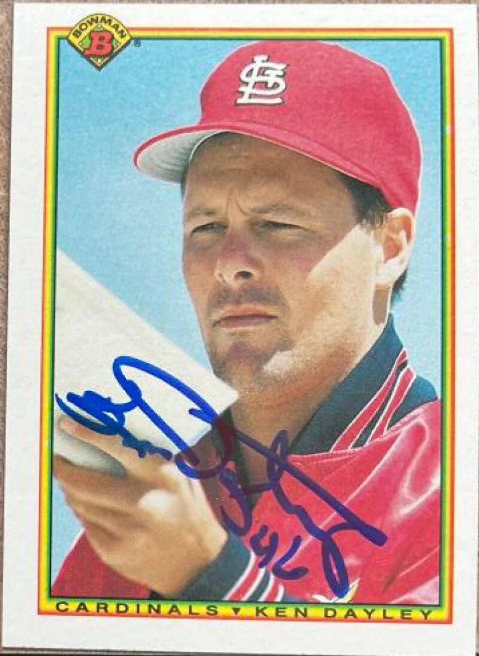 Carte de baseball Bowman signée par Ken Dayley (1990) - Cardinals de Saint-Louis