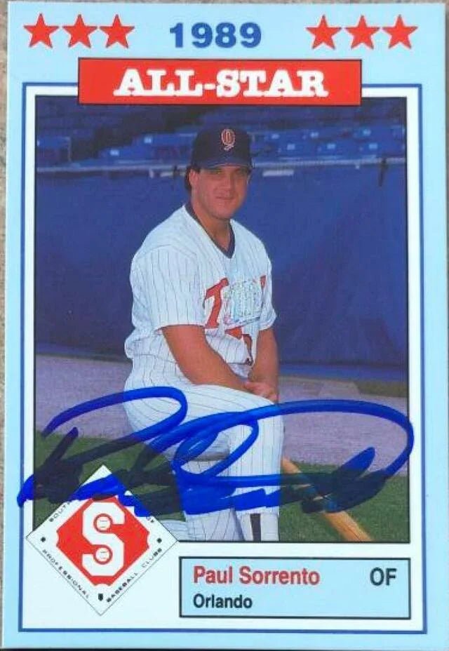Paul Sorrento a signé la carte de baseball des étoiles de la Ligue du Sud Jennings 1989 - Orlando Twins