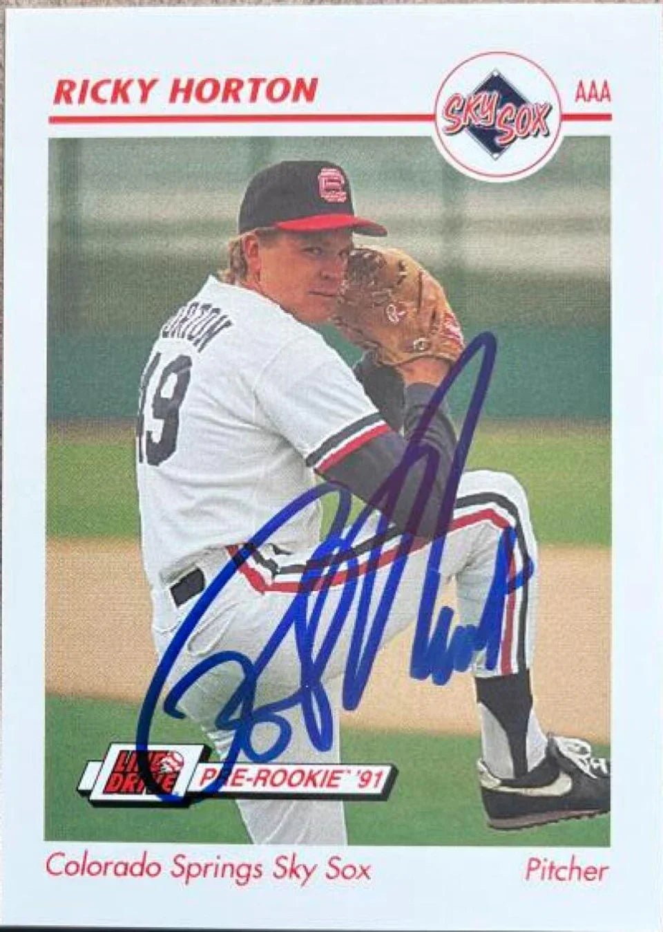 Carte de baseball AAA signée par Ricky Horton (1991 Line Drive) - Colorado Springs Sky Sox