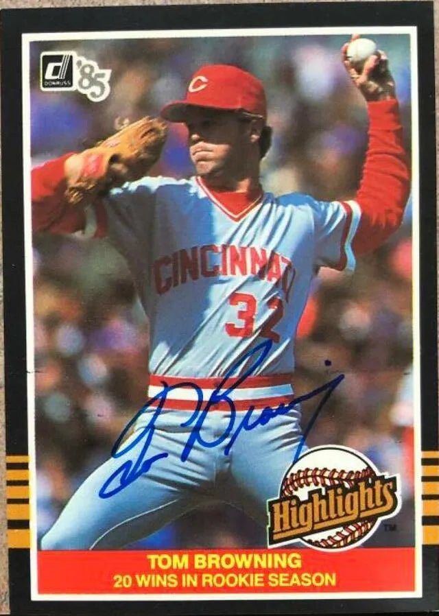 Tom Browning a signé la carte de baseball Donruss Highlights 1985 - Cincinnati Reds