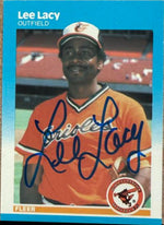 リー・レイシー直筆サイン入り1987年フリール光沢ベースボールカード - バルトモア・オリオールズ