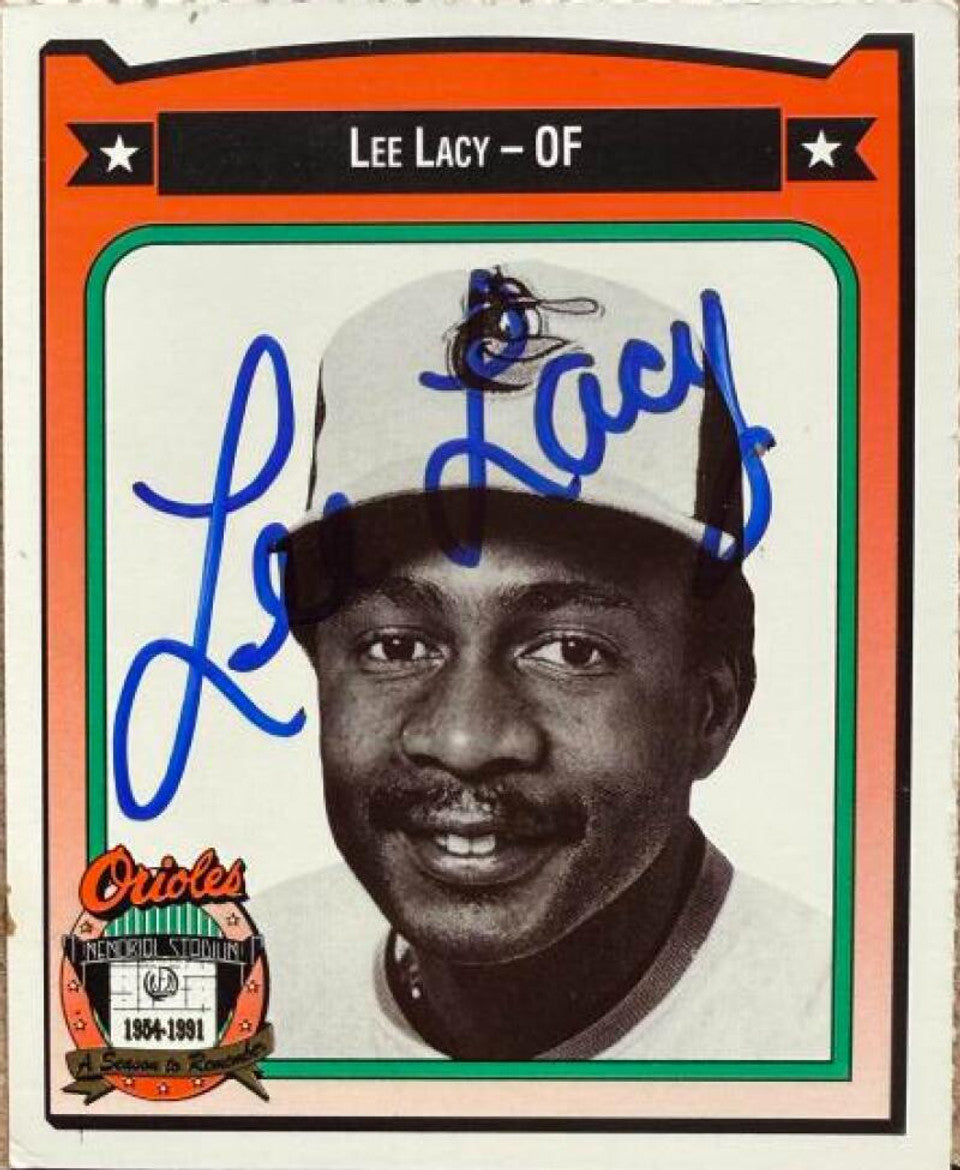 リー・レイシー直筆サイン入り1991年クラウンコーラベースボールカード - バルティモア・オリオールズ