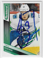 Troy Stecher Signed 2019-20 Parkhurst Hockey Card - Vancouver Canucks