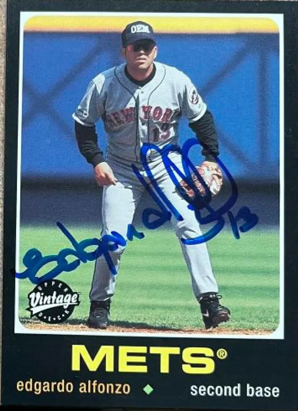 エドガルド アルフォンゾ サイン入り 2002 アッパーデッキ ヴィンテージ ベースボールカード - ニューヨーク メッツ