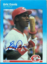 Eric Davis Signed 1987 Fleer Baseball Card - Cincinnati Reds #198
