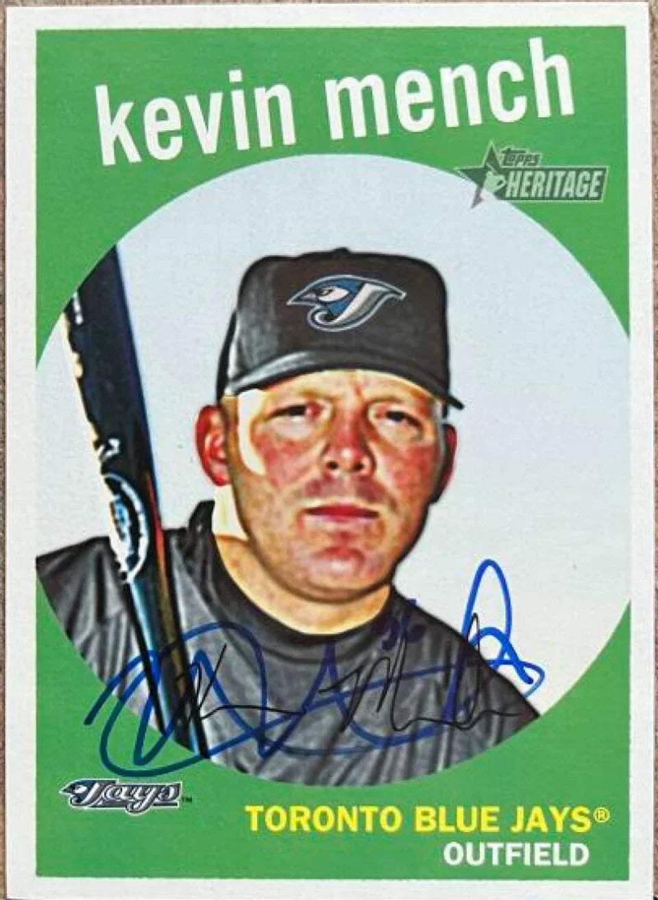 ケビン・メンチ直筆サイン入り 2008 Topps Heritage ベースボールカード - トロント・ブルージェイズ